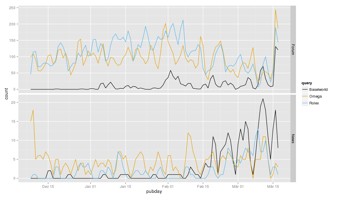 Use our media awareness platform to get quantitative data on online media reception and trends. Provide your company or clients with measurable insight on their impact, e.g. on marketing campagnes.